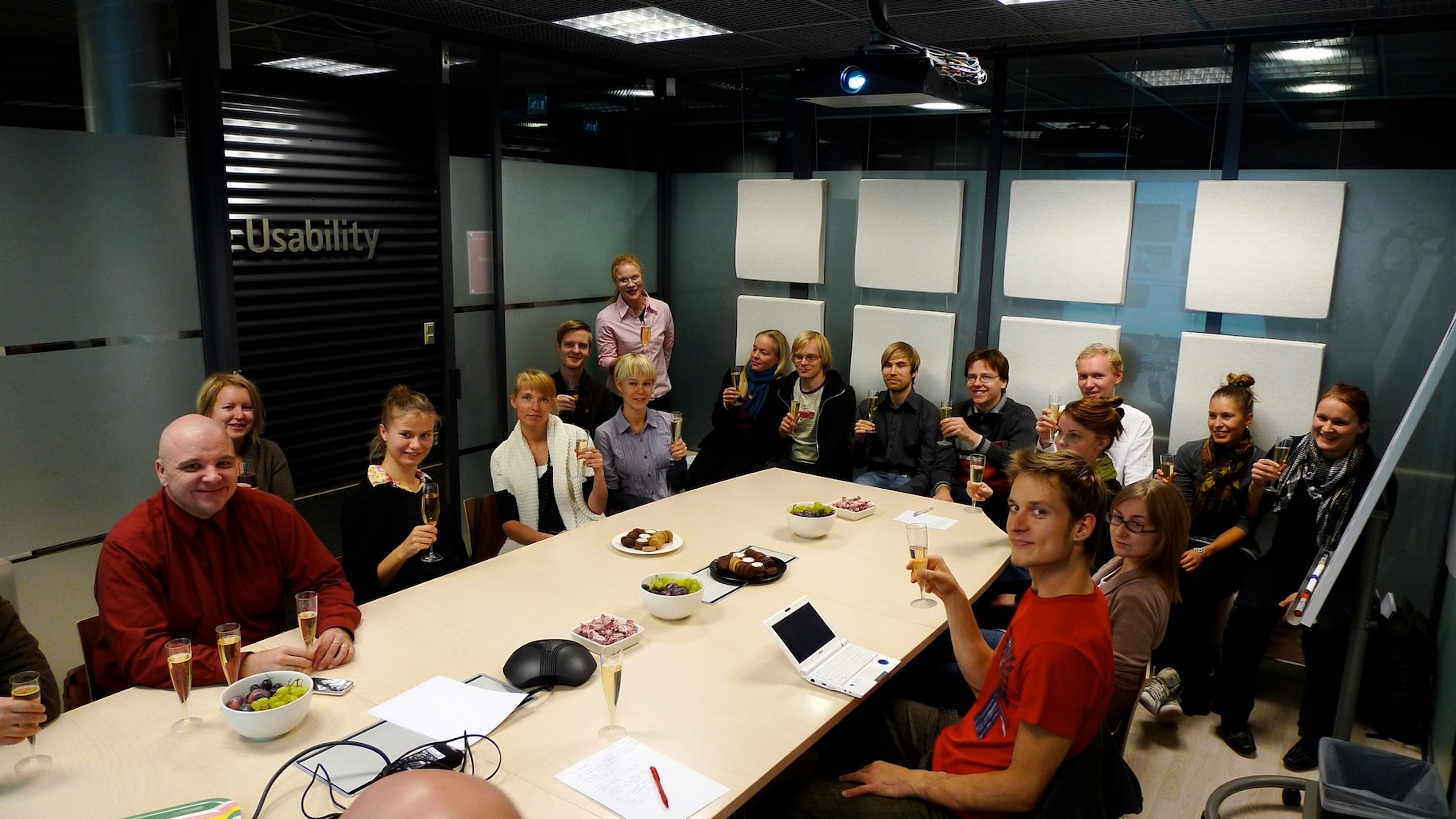 Käyttäjän ystävät -yhdistyksen nykyiset ja tulevat käytettävyysammattilaiset ovat ahtautuneet Adagen neuvotteluhuoneeseen kuulemaan yhtiön tuoreita kuulumisia. Aiemmin pelkkään käytettävyystutkimukseen keskittynyt yhtiö on laajentumassa myös suunnittelun puolelle.