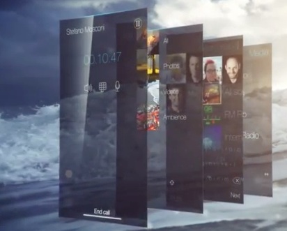 Jollalla taas läpikuultavat näyttökalvot liukuvat toistensa lomitse ja taustalla vaihtuvat värikkäät kuvat. Tulee vähän tunne, että käyttöliittymä on yritetty väkisin tuunata videota varten näyttämään kiinnostavammalta kuin se onkaan. Toki tämä on helppo ymmärtää markkinointivideossa, jonka tehtävä on vaikuttaa myyvältä. Yllättävämpää on, ettei käyttöliittymästä ole tuotettu sen laadukkaampia esittelyvideoita, vaan ollaan tärisevien messuvideoiden varassa.