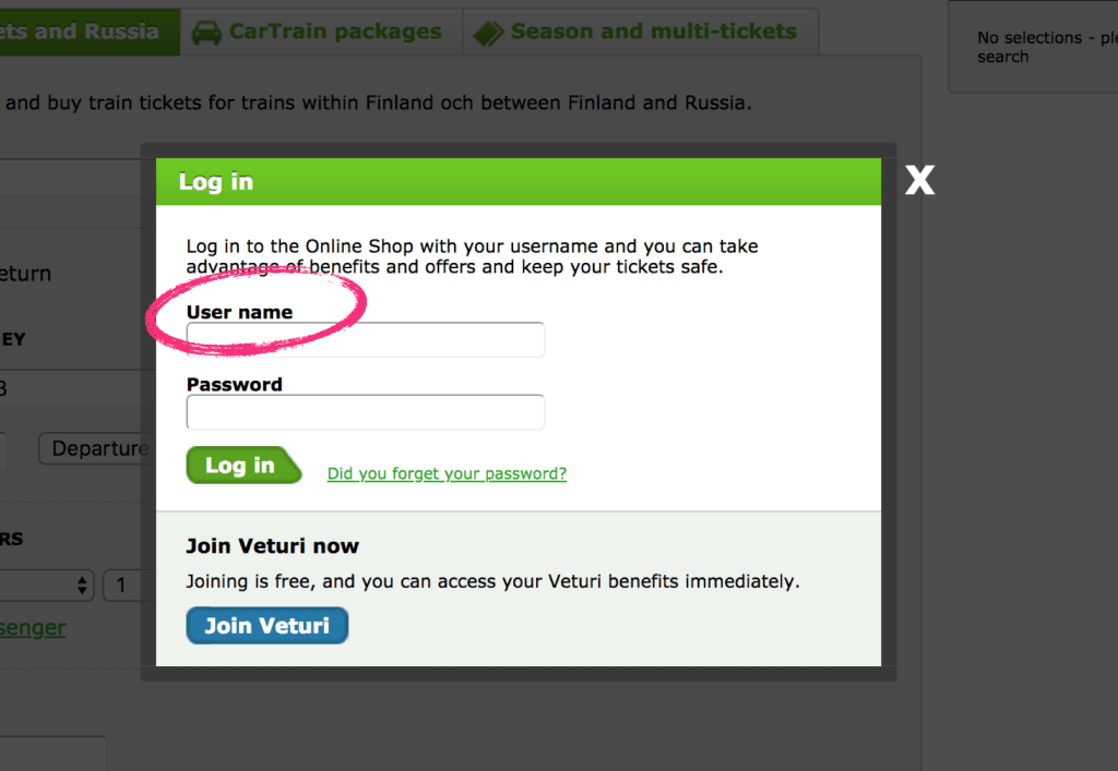 Ei riitä, että kirjautuu. Vielä pitäisi kaivaa jostain hankala varaustunnus ennen kuin saa matkansa nähdäkseen.