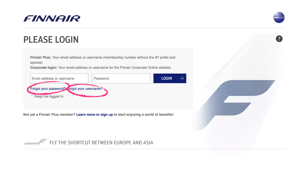 Kirjautumiseen käytetään ylimääräistä käyttäjätunnusta ja koska käyttäjät eivät muista niitä, tarjolla on erikseen toiminto niiden palauttamista varten.