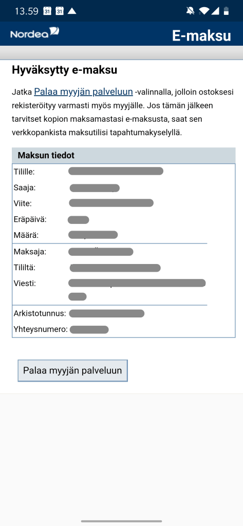 [Muokkaus 18.5. Sain Nordealta tarkennuksen tässä Twitter-ketjussa. Vanhaa polkua käytetään maksamisessa ja uutta tunnistautumisessa. Myös maksamisen polku on uudistumassa pian. Esimerkiksi SPR:n palvelussa on käytössä uusi versio. Hyvä syy käydä lahjoittamassa vähän.]