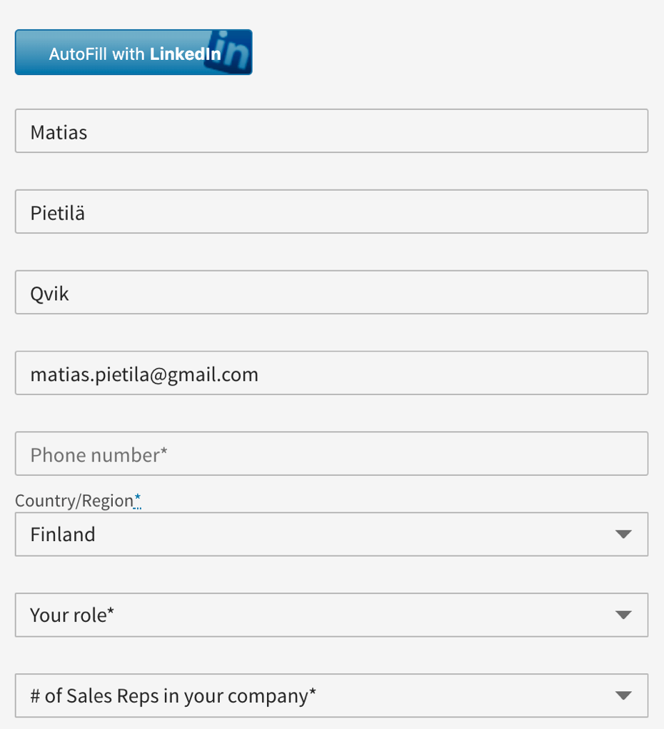 Etenkin erikoistilanteissa kirjautumispalveluista voi olla paljon apua. Ammattitiedot saa täytettyä Linkedinin perusteella kätevästi ilmoittautuessaan tapahtumaan.