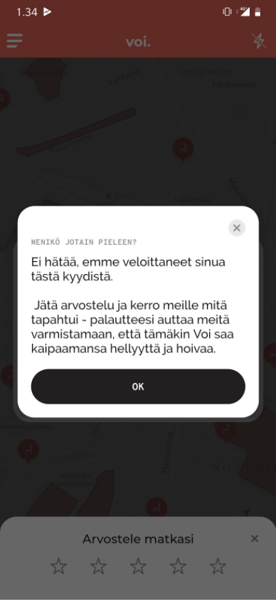 Kumpikaan yhtiö ei kiusaa käyttäjää pakollisella valokuvalla palautuksen yhteydessä, kuten virolainen Bolt tekee, mutta Voi kannustaa ottamaan valokuvan.