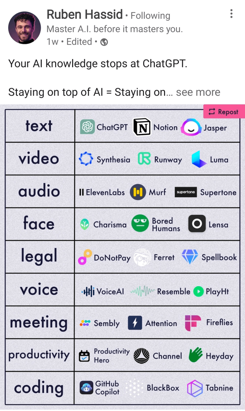 Jos haluat seurata vain yhtä tiliä, suosittelisin Aakash Guptaa. Hänkin kirjoittaa pitkiä ketjuja niin kuin kaikki muut, mutta pelkkien linkkien sijaan hän vetää asioita yhteen ja luo merkityksiää.